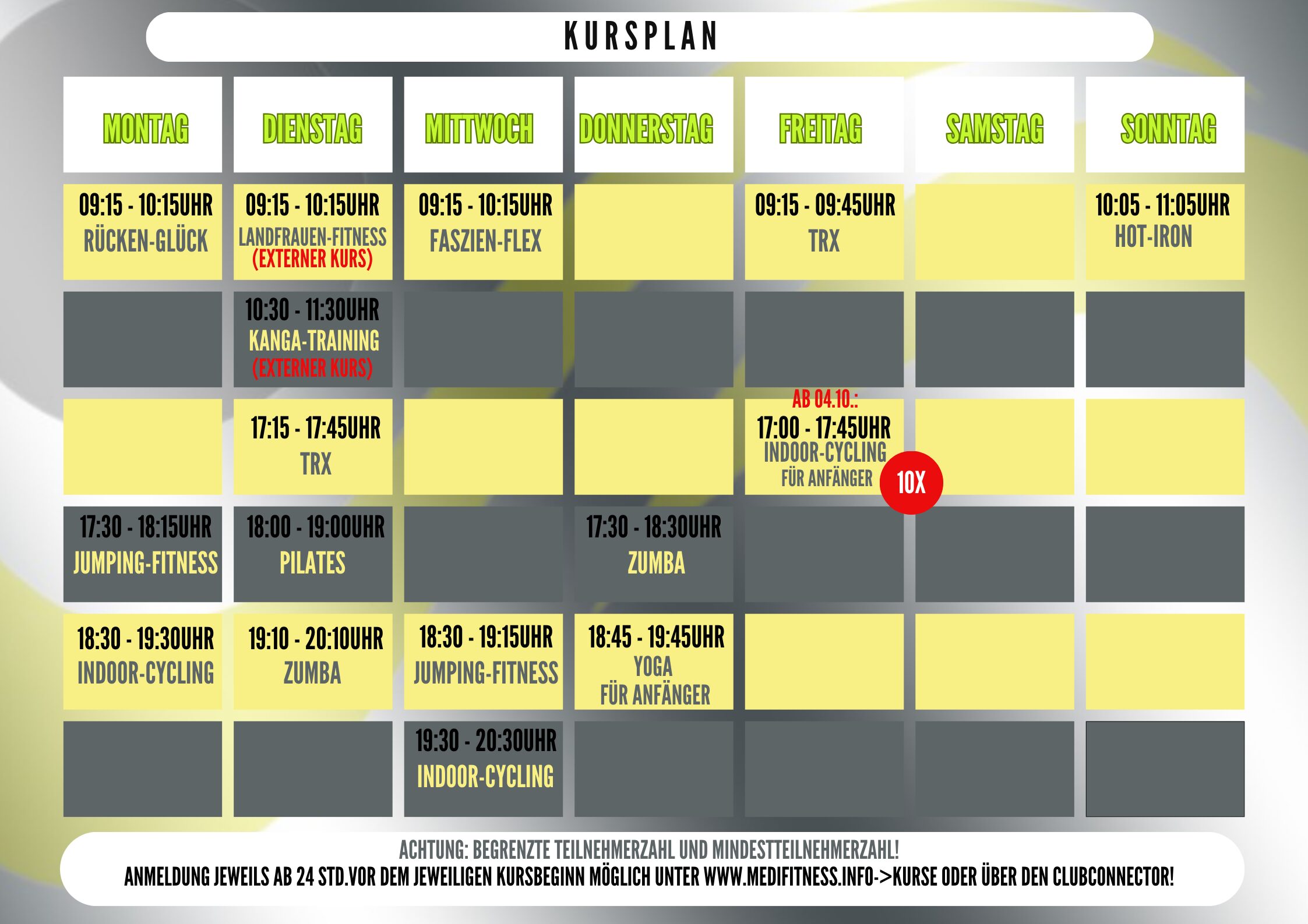 Kursplan medifitness GmbH Stand 10/24